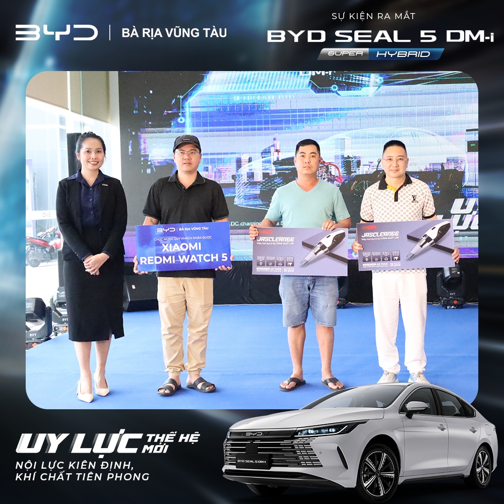Ngày 08/11/2025, Tại BYD Bà Rịa Vũng Tàu. Sự kiện ra mắt BYD Seal 5 DM-i đã khép lại thật trọn vẹn, BYD Bà Rịa Vũng Tàu xin gửi lời cảm ơn chân thành và sâu sắc nhất đến Quý Khách Hàng, Quý Đối Tác, Quý Đại Biểu, cùng Quý Cơ Quan Báo Chí đã dành thời gian quý báu đến tham dự Lễ ra mắt mẫu xe BYD Seal 5 DM-i tại showroom BYD Bà Rịa Vũng Tàu.